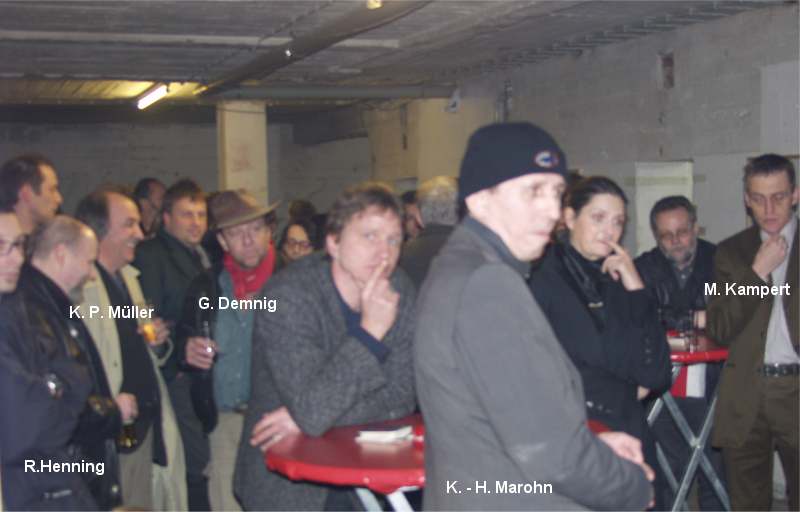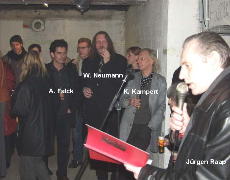 im November 2002 im Hochbunker in der Körner Str. von Köln-Ehrenfeld statt. In diesem Herbstmonat wird in unserem Kulturkreis traditionell der Toten gedacht: Allerheiligen, Volkstrauertag und Totensonntag sind Tage mit Friedhofsbesuchen und Kranzniederlegungen an Denkmälern.Mit-Veranstalter der Werkschau ist der Verein „Kultur Köln 30“ mit dem Geschäftsführer Heinz Marohn.